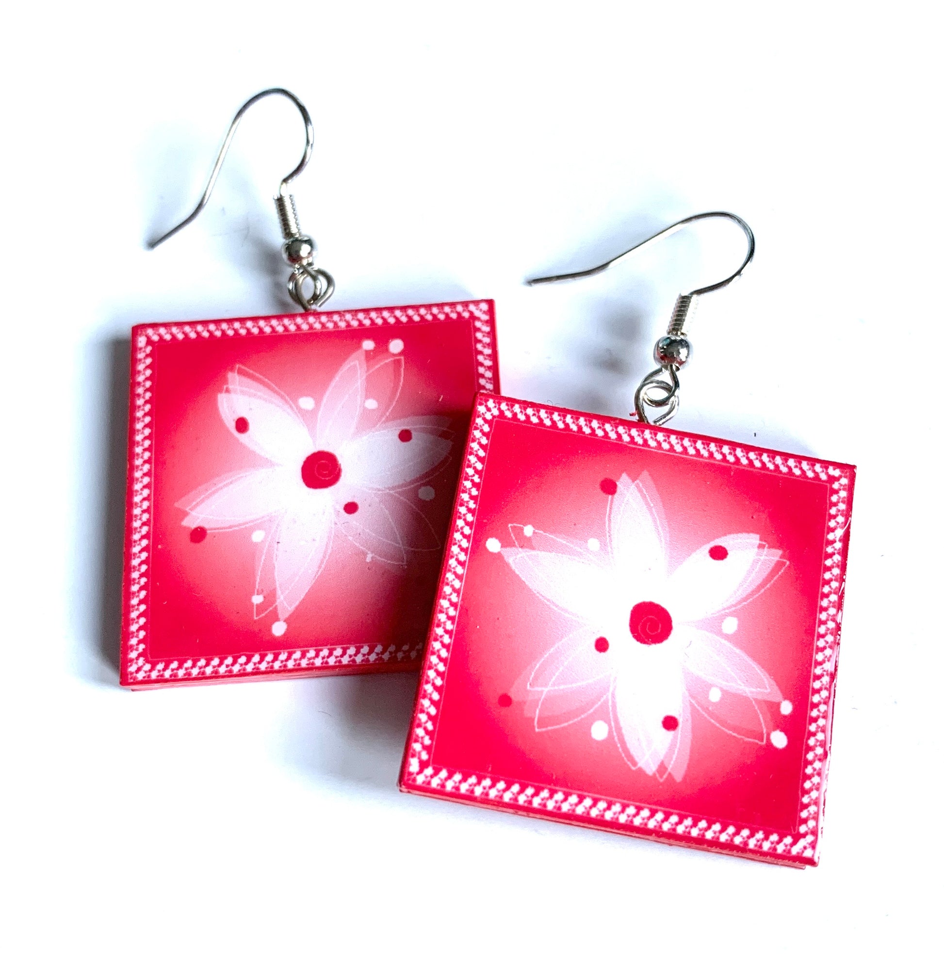 "Experience elegant flower-inspired style with our square shaped paper earrings. Made from high-quality paper, these unique earrings offer a lightweight and environmentally friendly option for accessorizing. Perfect for any occasion, add a touch of nature to your wardrobe with our Flower style earrings."