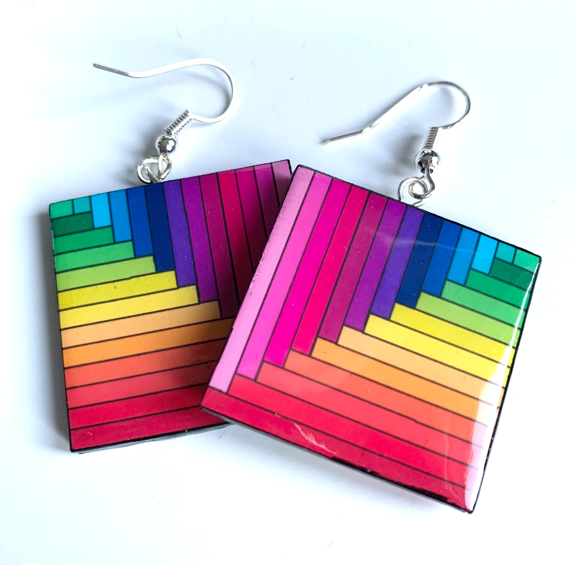 Introducing our Rainbow Square Shaped Paper Earrings. Made from vibrant, colorful paper, these earrings add a pop of color to any outfit. The square shape gives them a modern, geometric feel. Handmade with care, each pair is unique. Add some fun and style to your wardrobe.